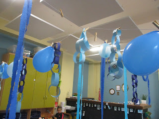 Vrij knutselen met allemaal 'blauwe' spullen.